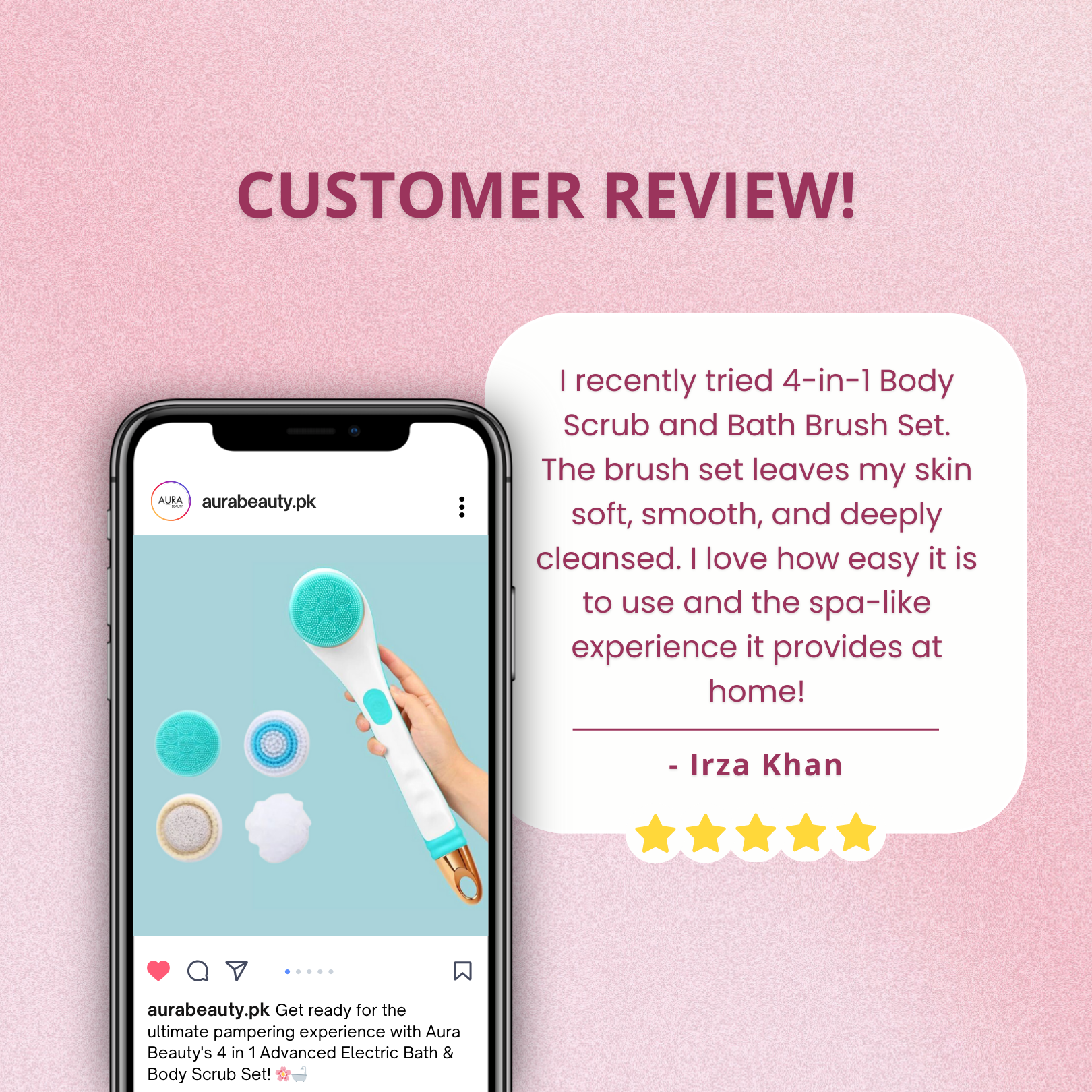 The 4 in 1 Electric Body Scrub and Brush Set from Auraé Beauty is the ultimate skincare tool for a smooth, rejuvenated body. Designed with multiple attachments, this set offers deep exfoliation, cleansing, and gentle massage to remove dead skin cells, boost circulation, and enhance your skin’s glow. Perfect for home spa treatments, this electric body scrub and brush set is a must-have for soft, radiant skin. Upgrade your skincare routine today with the best electric body scrubber in Pakistan.