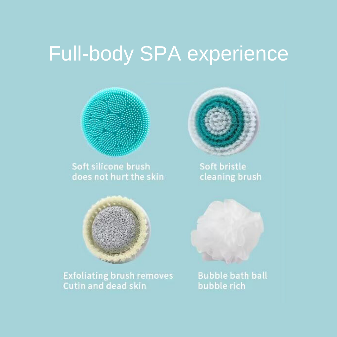 - Power up your 4 in 1 Electric Body Scrub and Brush Set to the desired speed.