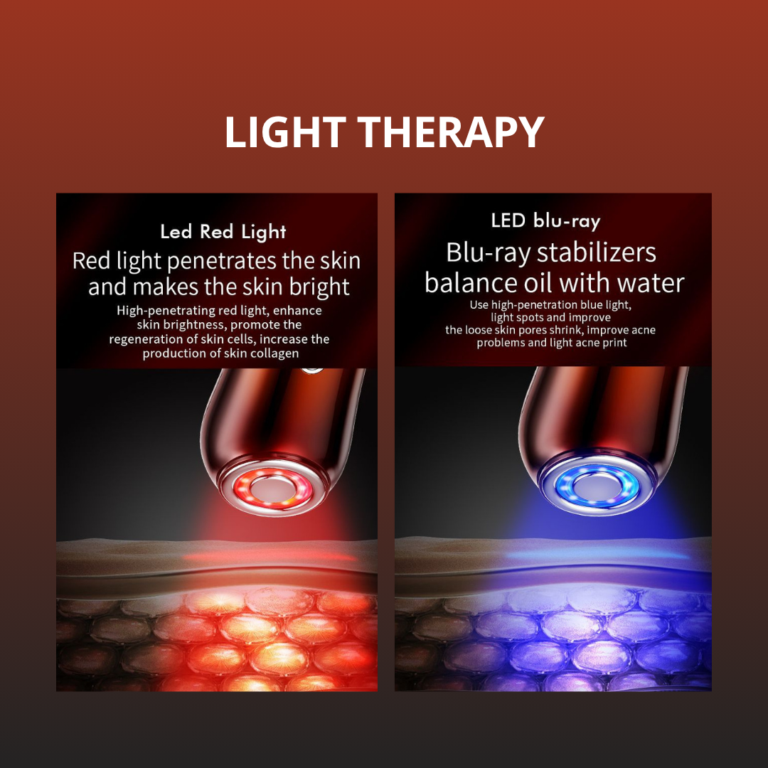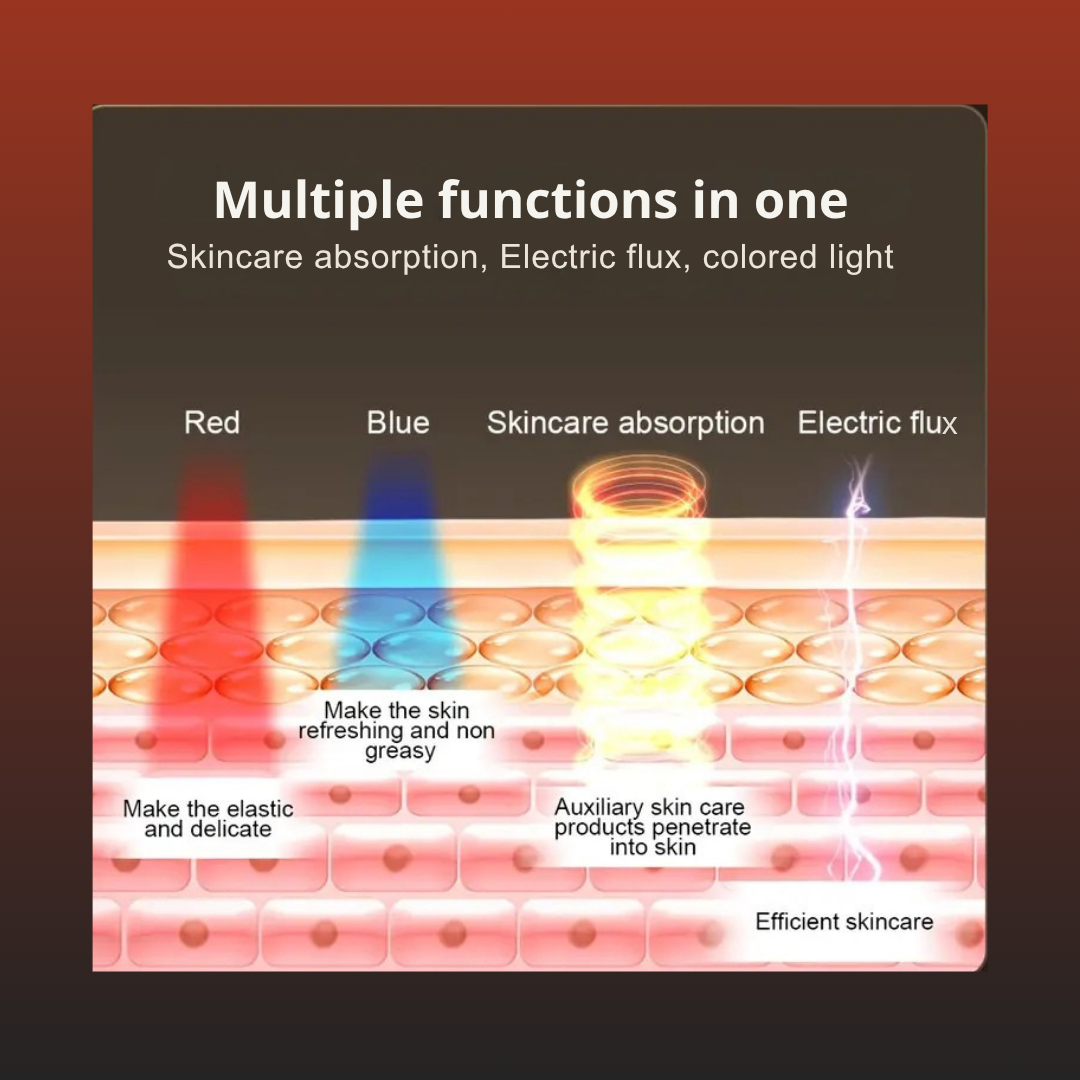 - Multi-Light LED Therapy targets fine lines, dullness, acne & uneven skin tone. (Red Light tightens skin, fades wrinkles, and boosts collagen. Blue Light calms acne, soothes redness, and clears up skin.)