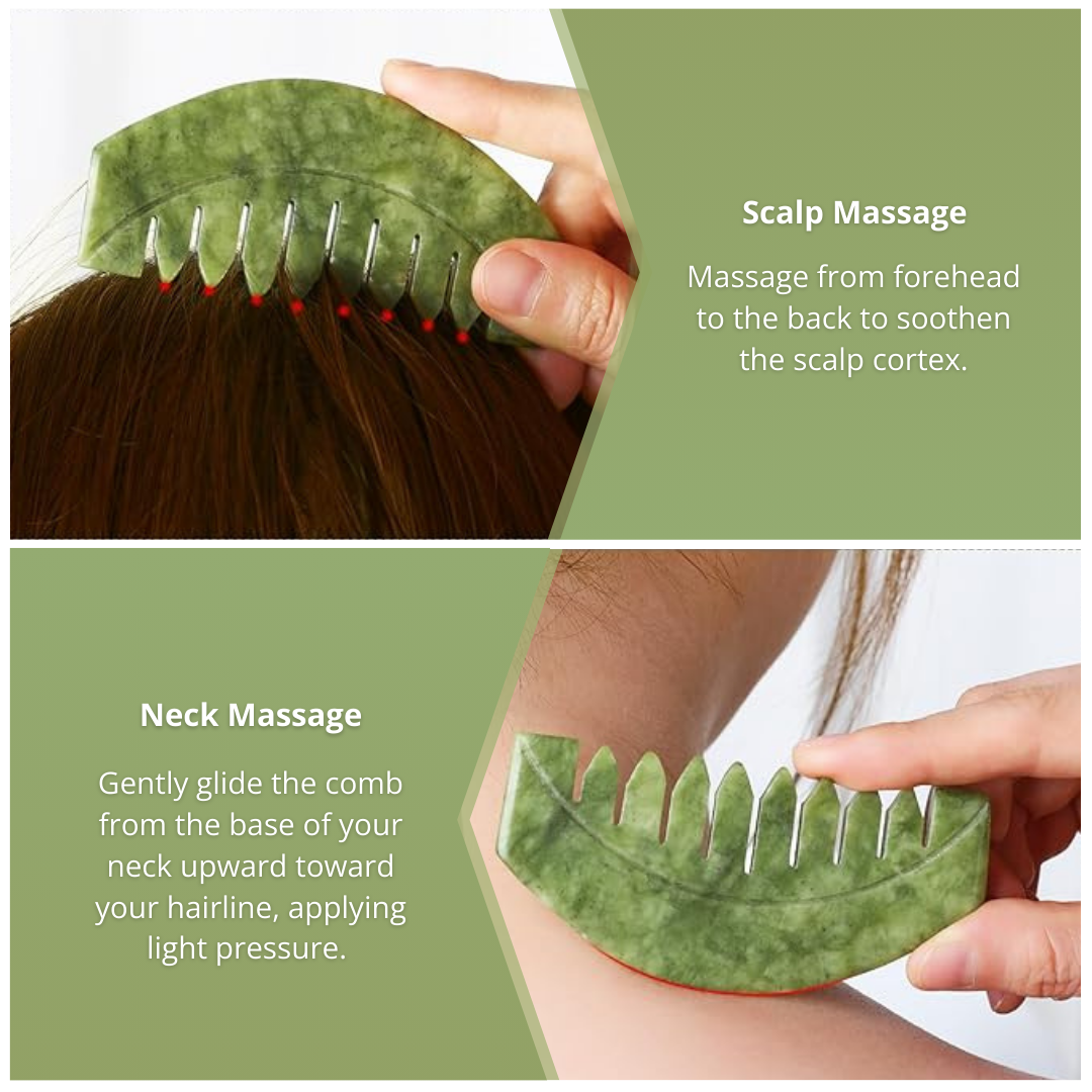 - Gently glide the Gua Sha comb over your scalp, starting from the forehead and moving towards the back of the head.