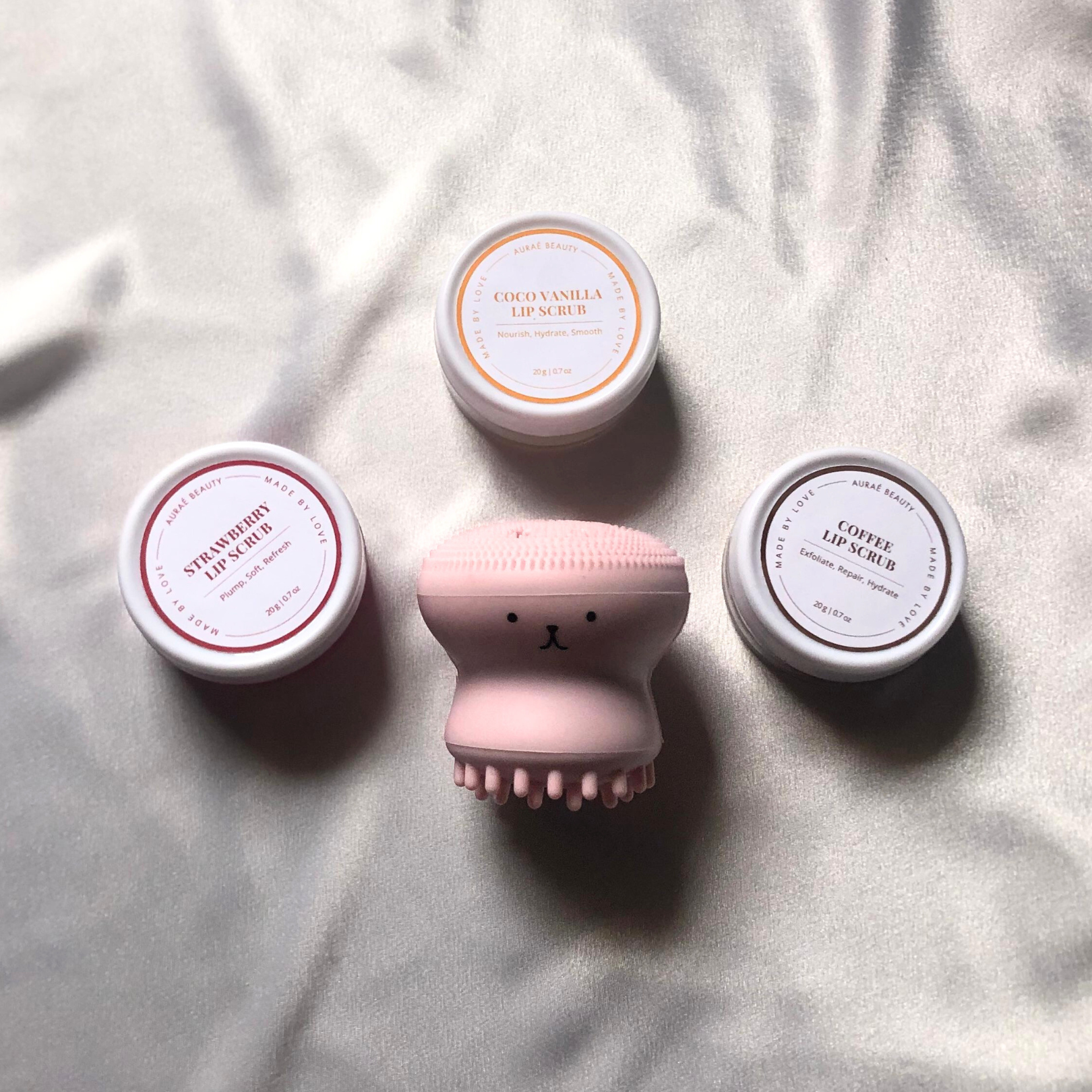 The Pink Glow Trio by Auraé Beauty is your ultimate glow-up bundle! This skincare set includes our Octopus Silicone Facial Cleanser and Lip Scrub Trio to deeply cleanse, gently exfoliate, and leave your skin soft, radiant, and refreshed. Perfect for all skin types, this pink skincare combo is a must-have for your daily routine.